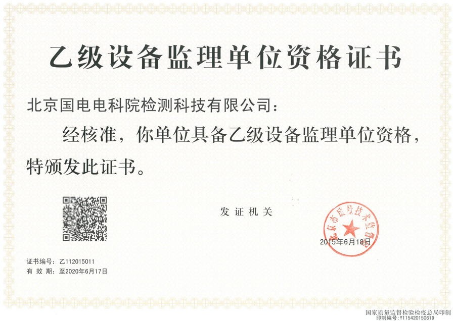 Qualification certificate of grade b equipment supervisor