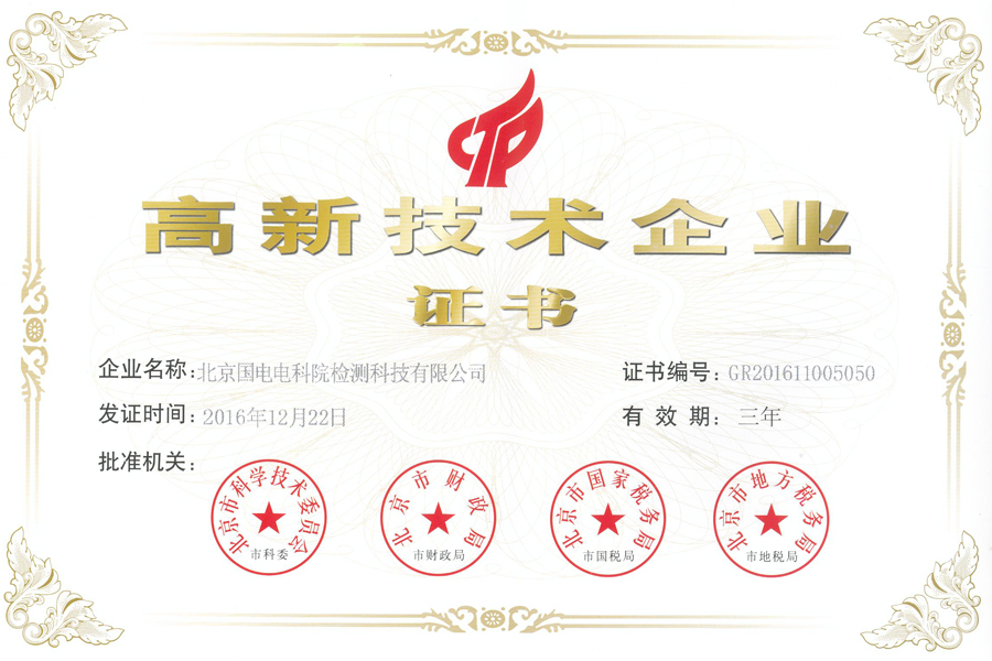National high-tech enterprise certificate