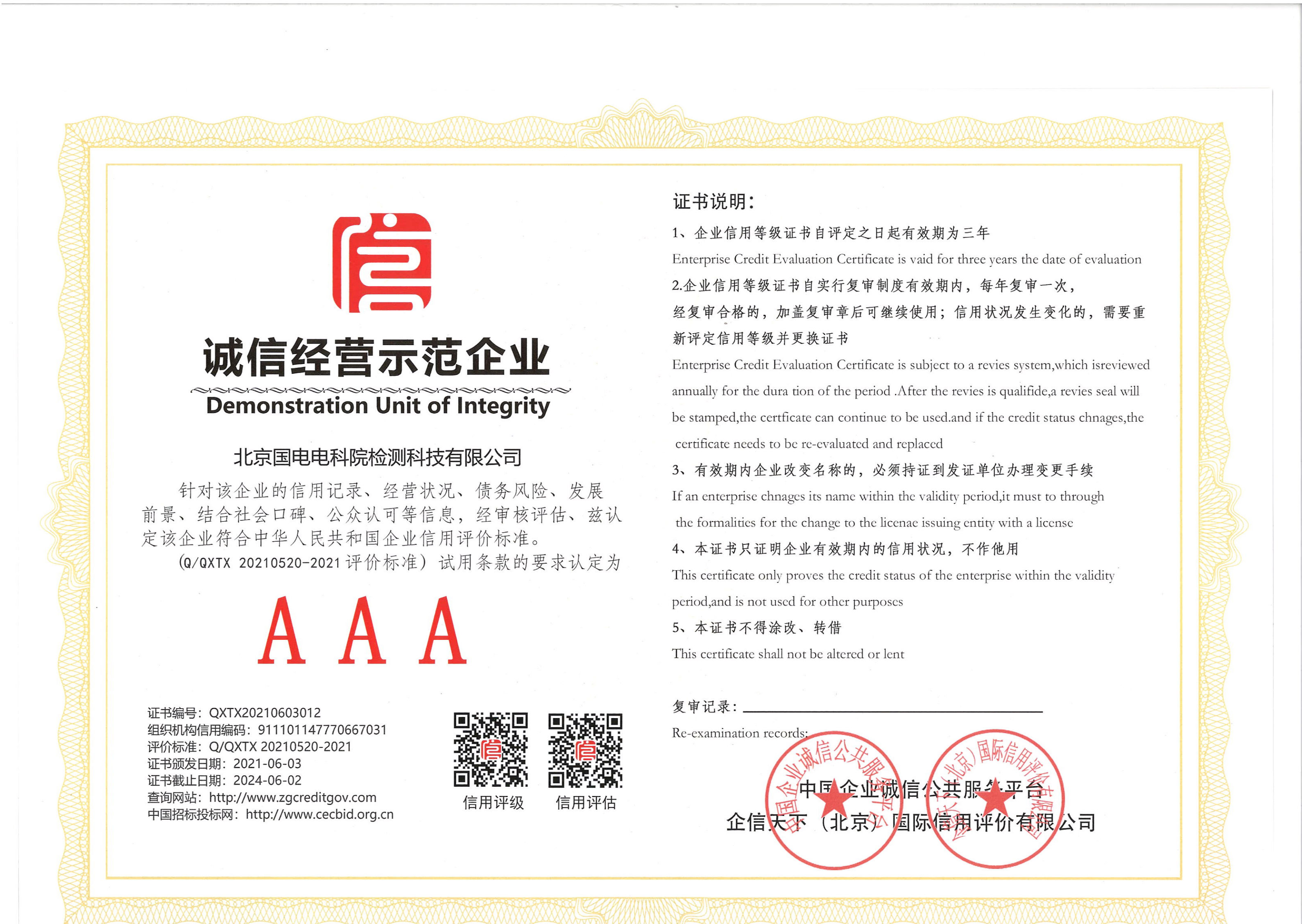 近日,我公司被授予“企業(yè)信用評(píng)價(jià)AAA級(jí)證書、企業(yè)信用等級(jí)AAA證書、誠信經(jīng)營示范AAA級(jí)企業(yè)、企業(yè)資信登記AAA級(jí)證書、質(zhì)量服務(wù)誠信AAA級(jí)企業(yè)、重合同守信用AAA級(jí)企業(yè)認(rèn)證證書、重質(zhì)量守信用AAA級(jí)企業(yè)”。