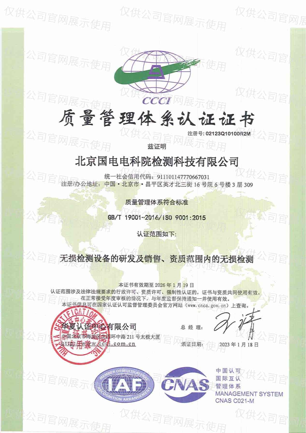 質(zhì)量管理體系認證證書