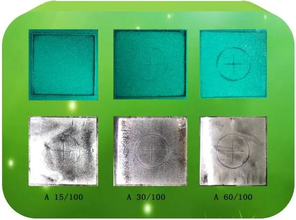 此外,探頭處設(shè)置了LED白光照明和LED紫外照明兩種方式,LED白光燈方便在光線不足場合利用磁粉檢測,LED紫外燈可在黑暗中利用熒光磁懸液來顯示出工件缺陷。主機(jī)有自保護(hù)功能開機(jī)通電5-10秒保護(hù),在通電5-10秒后啟動探頭開關(guān)利用 40HZ測量缺陷深度測量;缺陷顯示膜和磁懸液做實(shí)驗(yàn)對比。顯示膜與磁懸液使用A型試片測試對比,采用A型試片15/100、30/100、60/100進(jìn)行測試。