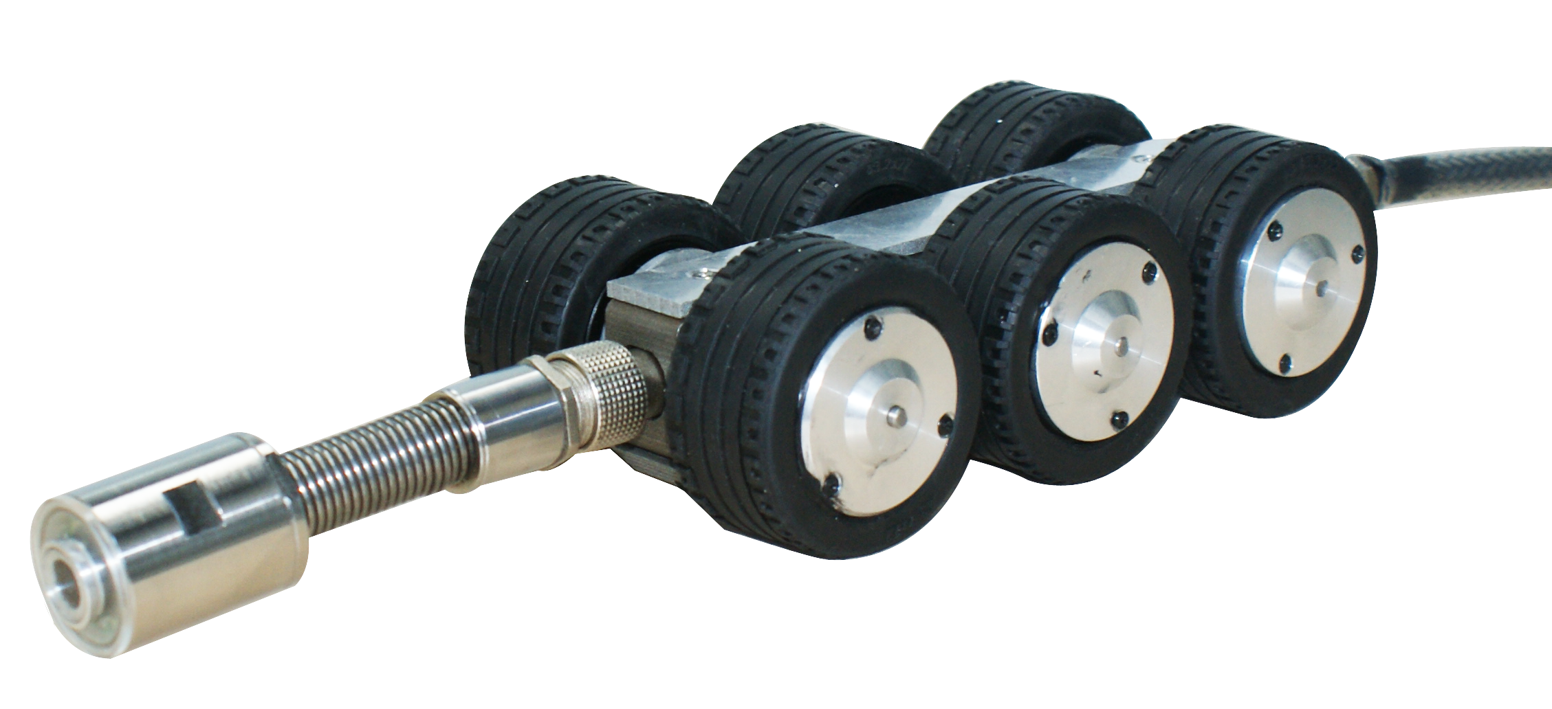 公司研發(fā)人員耗時兩年多開發(fā)了工業(yè)檢測機器人,有三款:管道彈力機器人、磁力爬行機器人和履帶爬行器。管道彈力機器人以其柔韌的結(jié)構(gòu),可以在垂直、水平、彎曲管道內(nèi)爬行,前端帶可360度轉(zhuǎn)動的高清攝像頭,實時拍攝管道內(nèi)部情況。磁力爬行機器人適用于鐵磁性材料上行走,履帶爬行器更適合于不平整的表面行走。