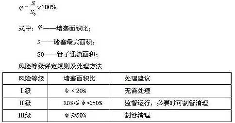 對于氧化皮檢測數(shù)據(jù)超標(biāo)管子進(jìn)行冷陰極射線復(fù)檢,對確定堆積厚度超標(biāo)的管子進(jìn)行割管清理。依據(jù)《DLT1324-2014鍋爐奧氏不銹鋼管內(nèi)壁氧化物堆積磁性檢測技術(shù)導(dǎo)則》的規(guī)定:氧化物堆積量超過彎頭通流面積50%(即風(fēng)險等級為Ⅲ級)的需要割管清理 。