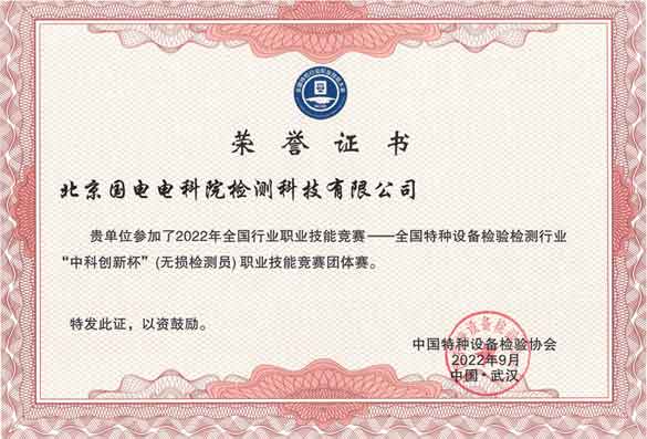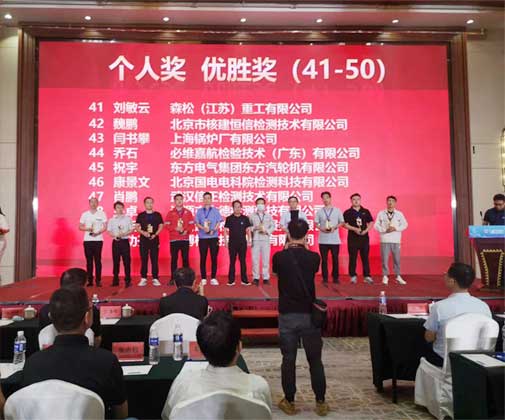 2022年9月19至23日2022年全國行業(yè)職業(yè)技能競賽——全國特種設(shè)備檢驗(yàn)檢測行業(yè)“中科創(chuàng)新杯”(無損檢測員)職業(yè)技能競賽在湖北省武漢市成功舉辦。在此次競賽中,我公司派出的無損檢測檢驗(yàn)人員重重突圍,取得優(yōu)異的成績。公司參賽代表康景文獲得個(gè)人優(yōu)勝獎(jiǎng),公司獲得優(yōu)秀組織獎(jiǎng)(第五名)、機(jī)構(gòu)比對合格單位(第六名)。