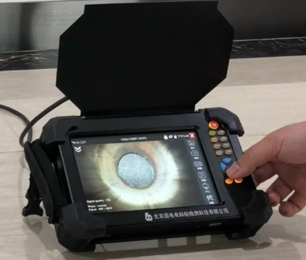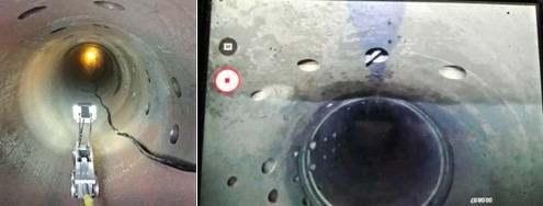 輔助內(nèi)窺鏡探頭使其始終置于聯(lián)箱中心線位置,可清晰顯示管內(nèi)異物及管內(nèi)壁情況。