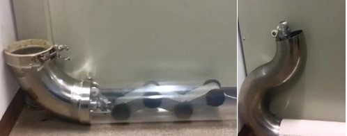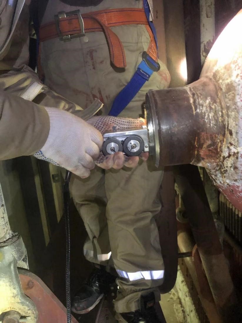 鋼絲擺頭內(nèi)窺鏡因其線軟,在檢查大管道和聯(lián)箱時出現(xiàn)彎曲,無法正常推進,檢查長度不到1米,現(xiàn)場使用時想辦法綁上鋼線推送也不太理想,特別國產(chǎn)內(nèi)窺鏡的燈光亮度不行,檢查聯(lián)箱時漆黑一片什么也看不清楚。