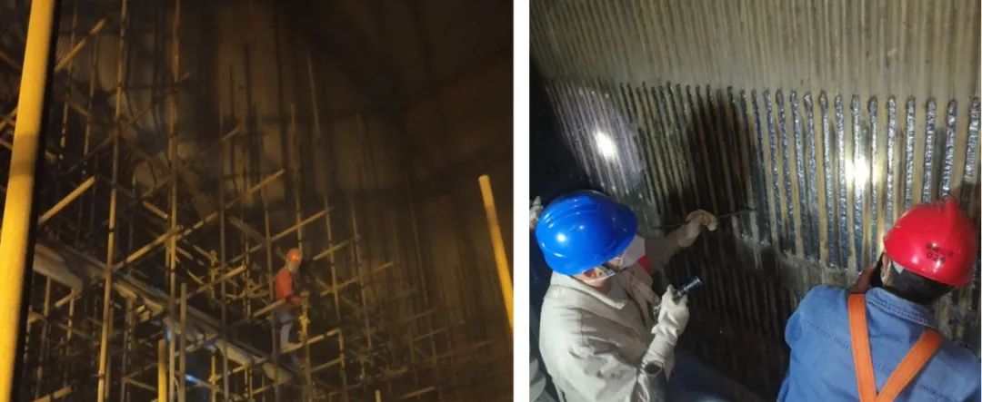 a)水冷壁管高溫腐蝕檢查;b)燃燒器噴口檢查;