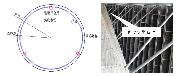 間冷塔周長約500米,根據(jù)熱成像儀測溫角度每3-4米安裝一臺,需安裝140臺熱成像儀,耗資700萬元,加上配件、電纜、安裝費等總價達(dá)上千萬元。若沿三角散熱器外圍圓周方向搭建軌道平臺,在軌道平臺上安裝三臺搭載熱成像儀的軌道巡檢機(jī)器人,分三段不間斷往復(fù)行走,既可實現(xiàn)實時視頻監(jiān)控,又能對散熱片整體溫度采集監(jiān)測,且費用大幅降低。