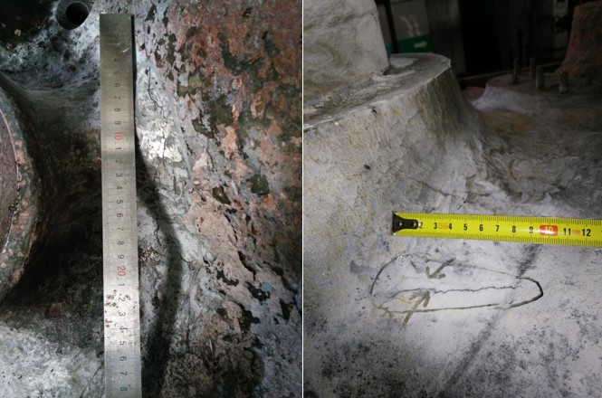 使用角磨機、直磨機或風(fēng)鏟等機械方法消除缺陷,并用滲透探傷方法給予確認。較大缺陷打磨深度達到95mm后才徹底清除。
