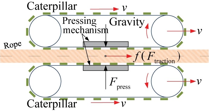 橫向?qū)к墐啥斯潭ㄓ跔t頂或水冷壁看火孔,并設(shè)置緊繩器,保證行走機構(gòu)平穩(wěn)運行?v向?qū)к壣隙斯潭ㄓ谛凶邫C構(gòu)底部,可隨之進行往復(fù)運動。通過縱橫導(dǎo)軌可構(gòu)建出覆蓋整個水冷壁管屏的坐標(biāo)系,使檢測探頭能夠移動到任意位置,實現(xiàn)無死角檢測。