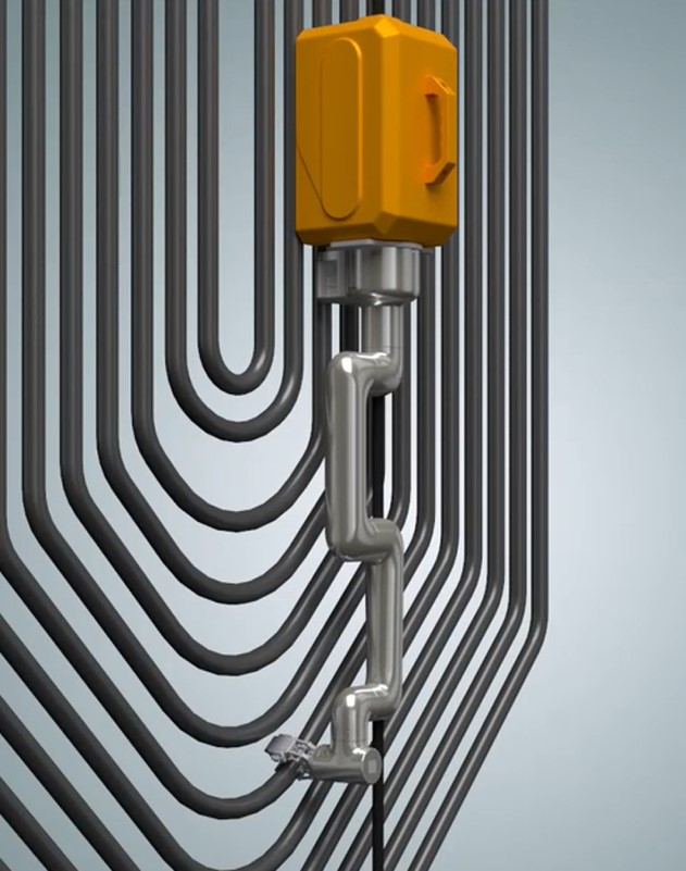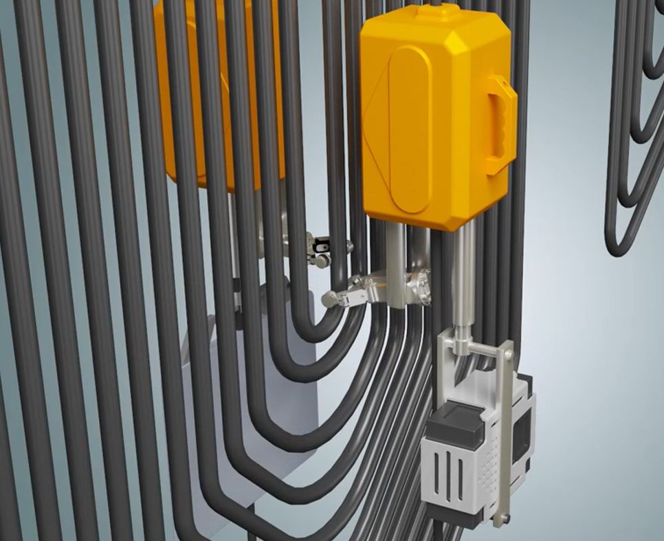 兩條柔性導(dǎo)軌的設(shè)計能夠覆蓋被測管屏的各個角落,實現(xiàn)360°無死角全面檢測。機器人可同時裝備多種檢測探頭(如測厚儀、射線成像設(shè)備、氧化皮檢測儀等),同時進行壁厚測量、裂紋檢測、氧化皮檢測、磨損評估和腐蝕檢測等多項任務(wù),多種檢測結(jié)果綜合評估,效率極高。